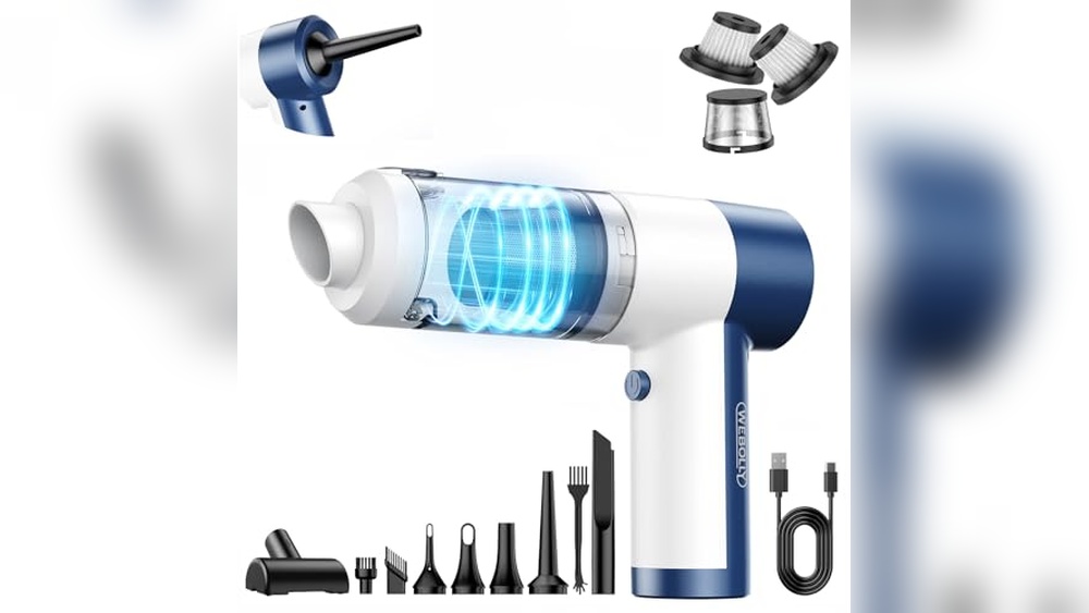 Featuring a 6-in-1 multifunctional design, this mini vacuum not only cleans but also serves as an air duster, which can be used to clear dust from keyboards, vents, or other delicate areas.