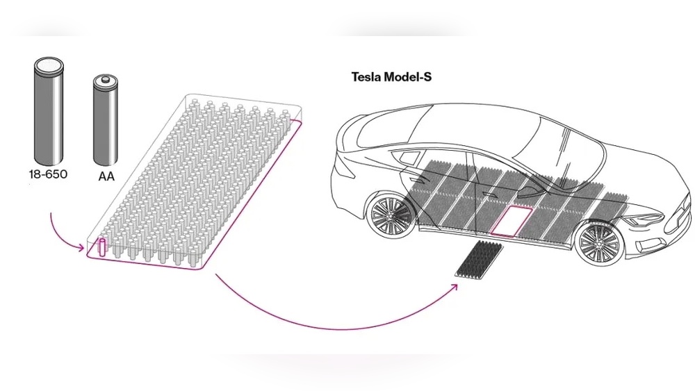 Lithium-ion batteries can hold a lot of energy in a small space. This makes them perfect for cars. Tesla makes their batteries in big packs. These packs have many small cells joined together.